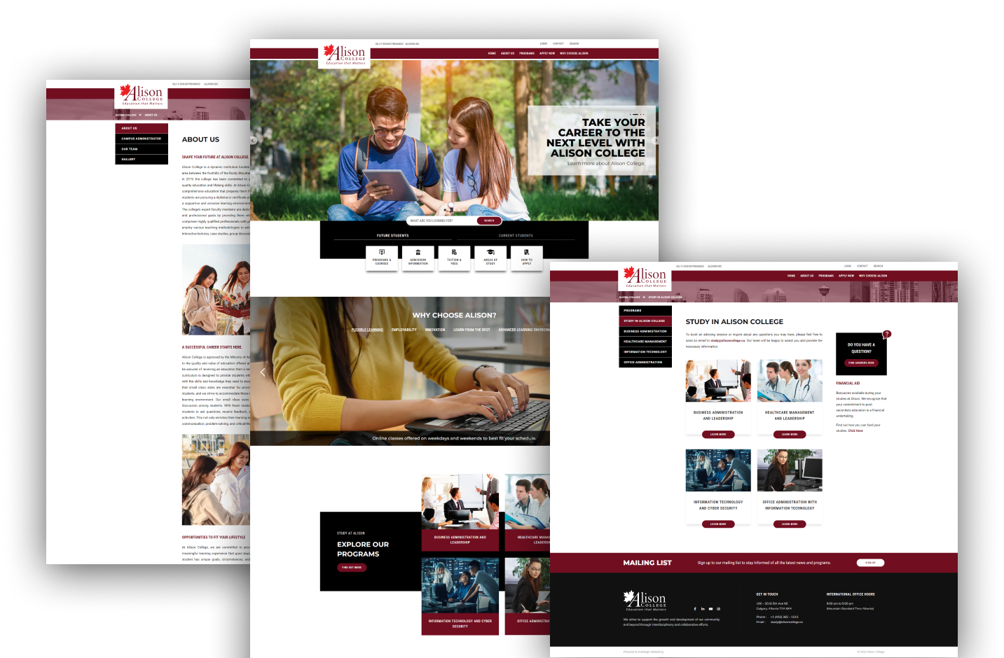 Alison College is a dynamic institution located in Calgary, AB, Canada, in a unique transitional area between the foothills of the Rocky Mountains and the vast Prairies.