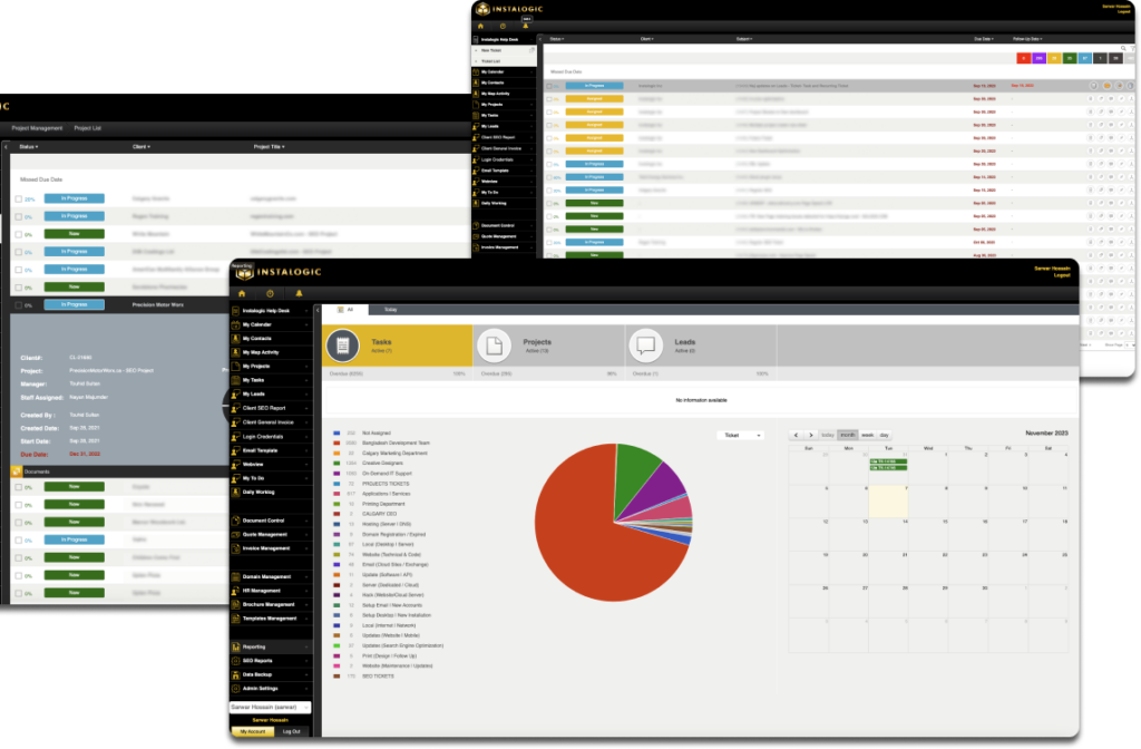 Instadesk is a complete service-based client and project management software consisting of many micro-modules that function individually to make a massive software system. Starting from a simple website contact form communication to completing client payments after project delivery, we have done it all. We have included all possible modules to serve a mid-scale service company. Let’s take a look at the most used modules in Instadesk.