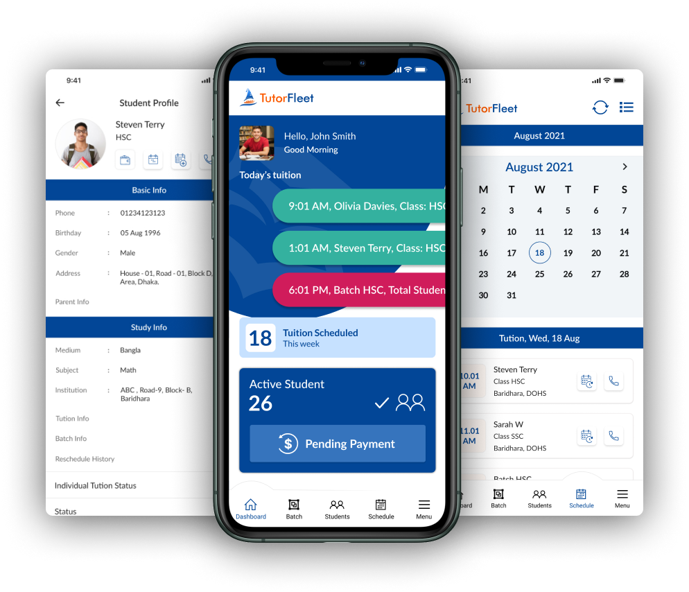 TutorFleet is a tuition management mobile Application where tutors can manage students in an easy and efficient way. Here Tutor can create students’ profiles and can Schedule/Re-Schedule time/dates and can trace payment history as well. In the coming version, TuitionIDEA is going to enhance the system with some exciting features.